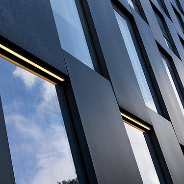 Diese innovative Bolzen-Einhang-Fassade zeichnet sich durch ihr markantes, scharfkantiges Profil in Kassettenoptik aus und eröffnet viele Möglichkeiten für eine dreidimensionale Fassadengestaltung. Eine ideale Grundlage für individuelle Sonderlösungen.