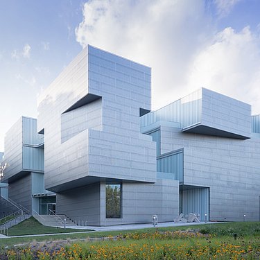 The four-storey Visual Arts Building at the University of Iowa has been clad with a new zinc and perforated stainless steel facade. This innovative building, designed by renowned Steven Holl Architects, impresses with its unusual design and functionality. Cleverly placed incisions and openings in the building envelope direct natural light deep into the interior. This well thought-out design not only creates an inspiring atmosphere, but also gives the building its unique character.