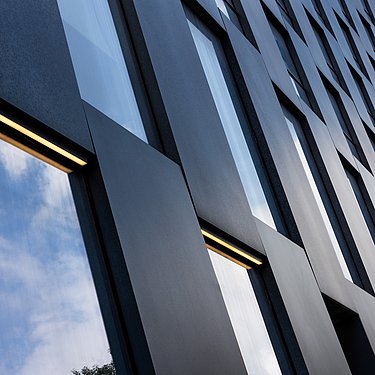 This innovative stud hung facade is characterized by its striking, sharp-edged profile in a cassette look and opens up many possibilities for a three-dimensional facade design. An ideal basis for individual special solutions.