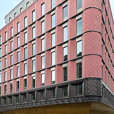 Die kunstvoll gestaltete Fassade ist ein zentrales Gestaltungselement des Ilona Rose House. Mit detailreichen Rosenmotiven aus POHL Bronze patinierten Messing, unserem pulverbeschichteten Stahl und GRC greift sie die künstlerische Tradition Sohos auf und interpretiert sie zeitgenössisch. Je nach Lichteinfall entfaltet die Oberfläche eine lebendige Dynamik, von warm glänzendem Messing bei Sonnenschein bis zu einer zurückhaltend eleganten Anmutung bei bedecktem Himmel, und macht das Gebäude zu einem charakterstarken Teil des Stadtbilds.