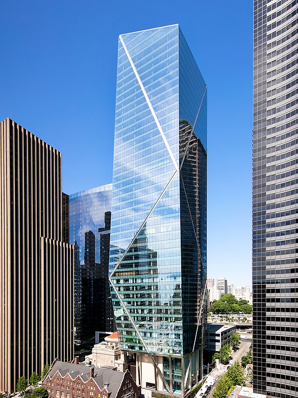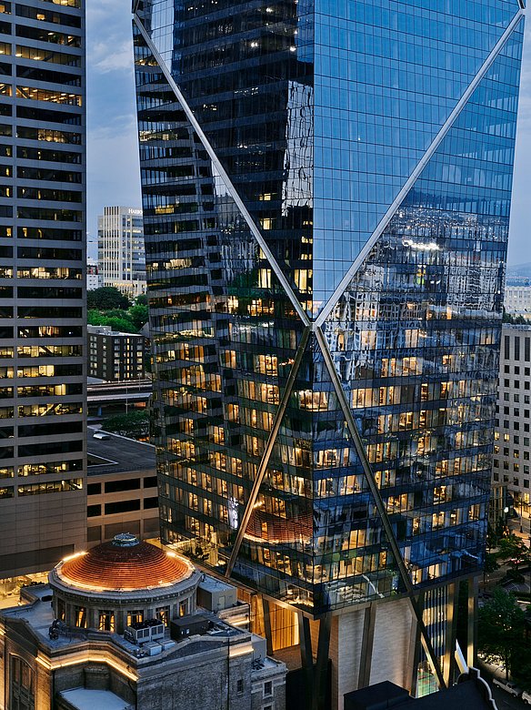 For the 5th & Columbia Tower, we realized a new column cladding made of stainless steel. The architectural highlight of this building are the individual columns that extend in dynamic zigzag lines to the top of the facade. The exclusive POHL Linen finish harmonizes perfectly with the modern architecture of the building and also creates a fascinating visual accent.