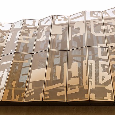 Finished with a gold powder coating and realized using the POHL Europanel system, the facade not only creates an architectural highlight on the exterior. Thanks to the perforation, it also fills the interior with bright, natural light, resulting in warm and welcoming spaces.
