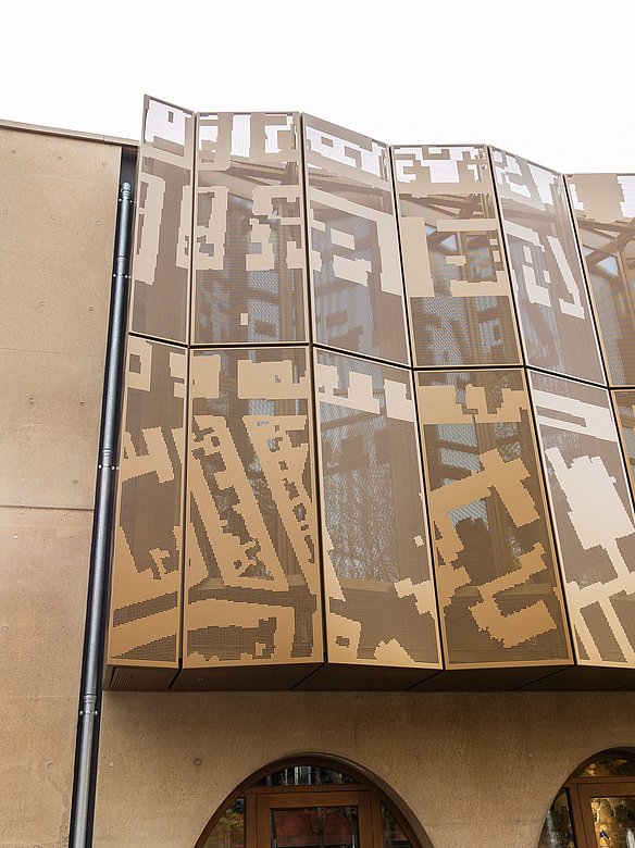 For the extension of the Blaue Funken, one of Cologne’s oldest carnival associations, a facade was created that tells a very special story. The perforated aluminum panels depict the historic city map of Cologne – a meaningful detail for a traditional association deeply connected to the city and its history.