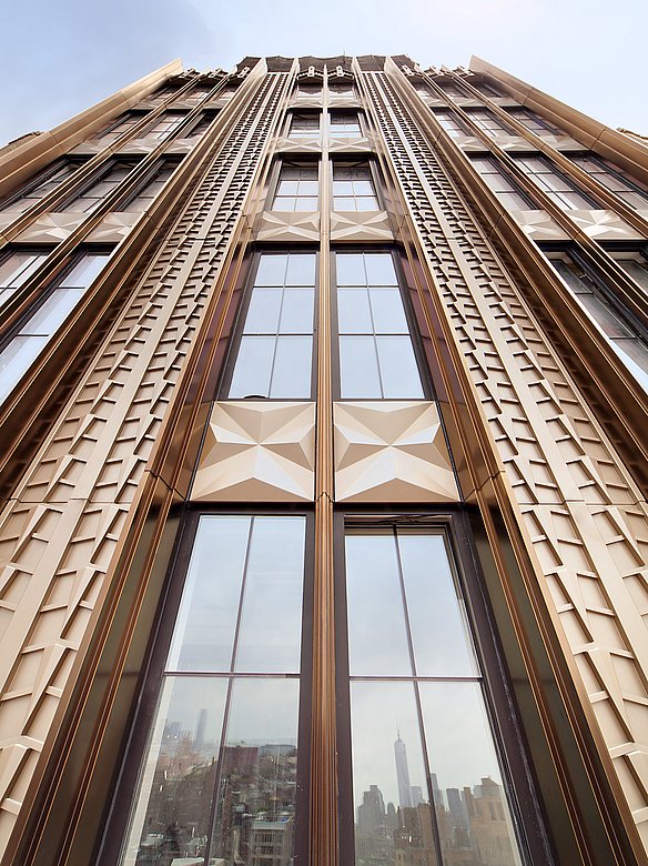 For this project, POHL manufactured aluminium panels with an elegant anodized bronze-coloured surface.
