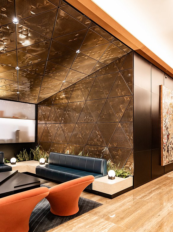In Zusammenarbeit mit den renommierten A+I Architects wurde im Jahr 2020 eine einzigartige Innenraumgestaltung realisiert. Diese verwendet edles Messing als zentrales Material, das dem Raum eine unvergleichliche Aura von Wärme und Eleganz verleiht. Die Messingoberfläche POHL Bronze Finish lässt den Raum aus jedem Blickwinkel in besonderem Glanz erstrahlen.