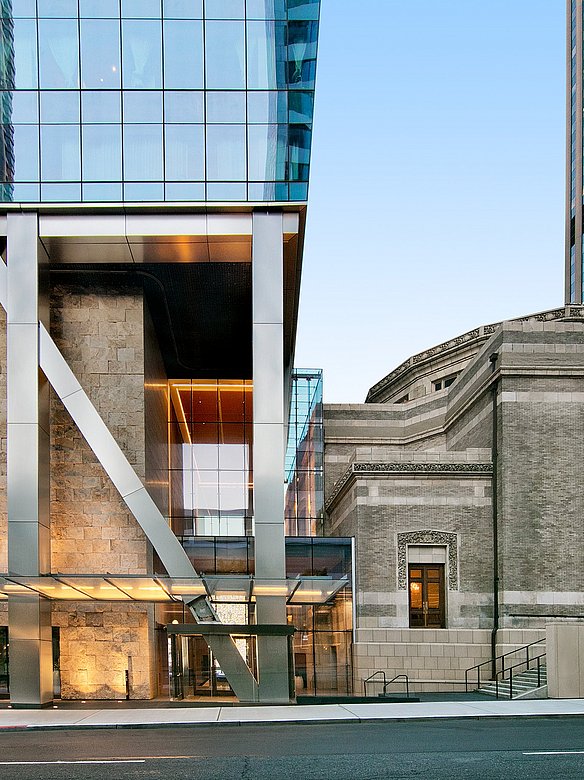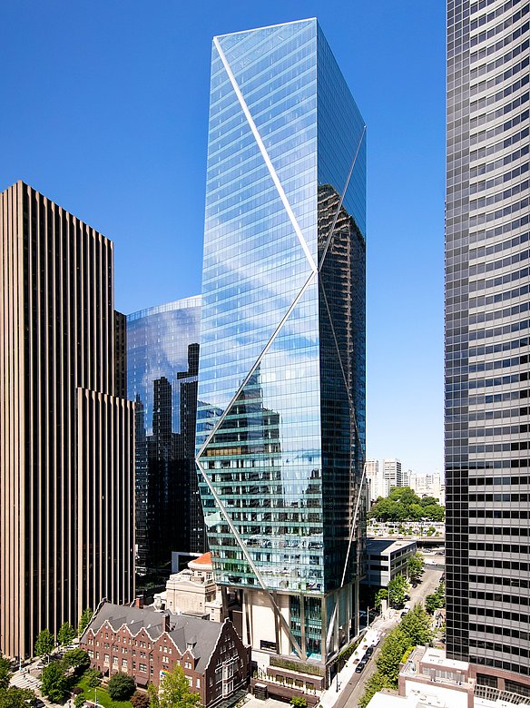 Für den 5th & Columbia Tower haben wir eine neue Säulenverkleidung aus Edelstahl umgesetzt. Das architektonische Highlight dieses Bauwerks sind die vereinzelten Säulen, die sich in dynamischen Zickzack-Linien bis zum oberen Fassadenabschluss erstrecken. Die Veredelung im exklusiven POHL Linen Finish harmoniert perfekt mit der modernen Architektur des Gebäudes und setzt gleichzeitig einen faszinierenden visuellen Akzent.