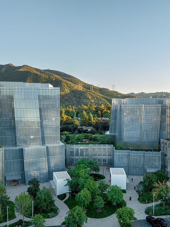 Die Headquarters von Warner Bros‘ in Los Angeles wurden mit dem Bau des Second Century Burbank nach Plänen von Gehry Partners eindrucksvoll erweitert. Die Bauten erheben sich mit ihrer „eisweißen“ Fassade wie gigantische Eisberge entlang des Freeway.