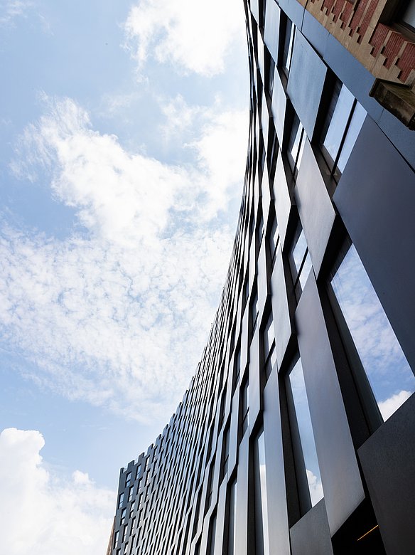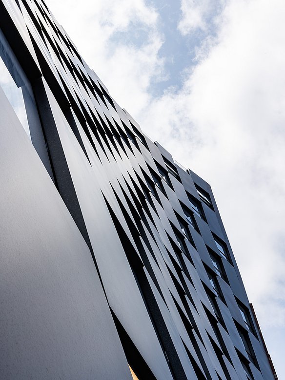 »The Smile« in New York City ist ein architektonisches Highlight im Stadtteil Harlem, entworfen von den Architekten BIG. Das markante Wohngebäude verdankt seinen Namen der geschwungenen, lächelnden Form der Fassade, die sich elegant über die 125th Street erstreckt. Die Fassade besteht aus schwarzen Edelstahl Paneelen mit POHL Charcoal Matt Cloudy Finish, die dem Gebäude eine dynamische und moderne Ästhetik verleihen. "The Smile" kombiniert innovative Architektur mit luxuriösen Wohnräumen und spiegelt den kreativen Geist der Stadt wider.