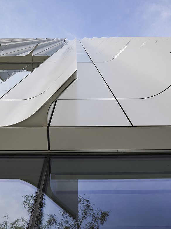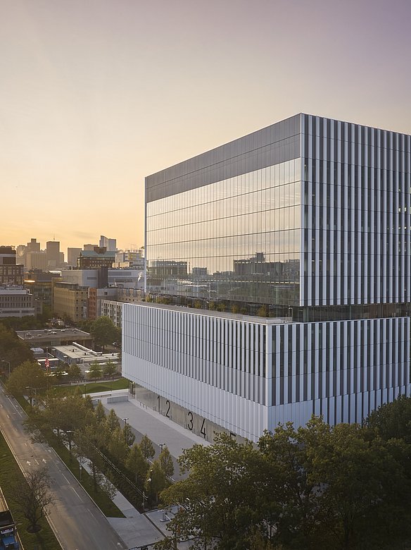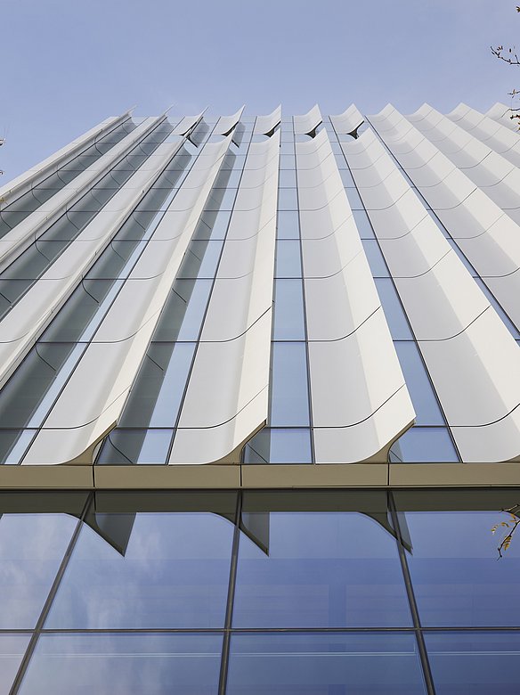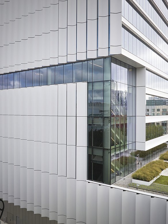 Die Architektur der neuen Gebäudehülle soll die Forschungsschwerpunkte des Volpe Zentrums sichtbar machen: Transport und Technologie. Ein herausragendes Merkmal der Fassade sind die von POHL gefertigten vertikal ausgerichteten Sonnenschutzlisenen aus pulverbeschichtetem Aluminium, die an die Tragflächen eines Flugzeugs erinnern. Sie lassen viel Tageslicht in das Gebäude, verhindern aber direkte Sonneneinstrahlung und Blendung.